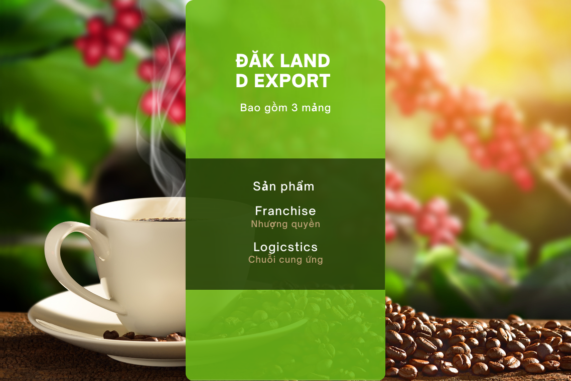 D-Export là mũi nhọn xuất khẩu của hệ sinh thái Đăk Land, phát triển theo ba trụ cột chiến lược: sản phẩm, thương hiệu nhượng quyền và dịch vụ logistics toàn cầu.